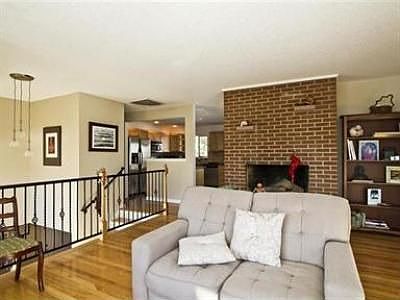Open floor plan & wonderful picture windows. Tastefully remodeled with high end finishes--gorgeous kitchen features granite counter & tile floors. Oak floors throughout upper level. Spacious family room, living room & master. Inviting covered porch with large yard. New roof.