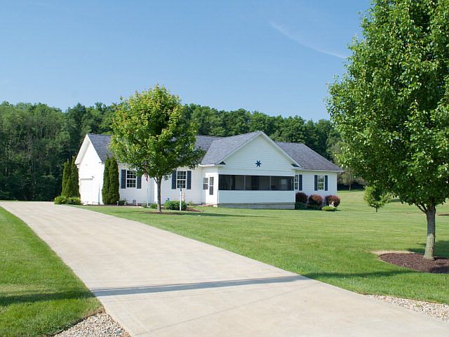 Easy one floor living in the country. Spacious 1.8 acre lot with access to private lake and walking trail! Custom built home with a few tweaks to make it handicap friendly. Cathedral ceilings, giant bedrooms and a wonderful screened in porch for doing that front porch thing! The grounds are meticulously kept and give the home a clean, sleek look from the curb. Wooded backdrop doesn't hurt either. Fully applianced, bright white, eat-in kitchen with fresh paint. The oversized garage might be the best part of all with its abundant workshop space. The basement is just waiting to be finished and is pre-plumbed for a full bath.