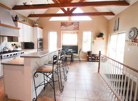 This home is very unique with the large kitchen/entertainment space that has been added. Chef's dream kitchen with a commercial style cook top, dbl ovens, and dbl door refrigerator. Formal dining with fireplace. Easy access to the deck, backyard and hot tub make entertaining easy and generous. There is also finish in the basement that adds a family room and bonus 4th bedroom. Lots of updating throughout including windows, HVAC, roof, siding, interior and exterior paint.