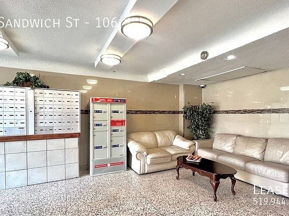 Welcome to 3015 Sandwich, a well maintained 5 story apartment building offering 1 - 2 bed and 1 bath units in Sandwich Town. Close to the University of Windsor, the waterfront, Ambassador Bridge and downtown Windsor. The building has onsite maintenance, elevator, main floor laundry room and access to the parking lot. Unit 106 has freshly painted walls, refinished parquet wood and ceramic tile floors. Kitchen has wood cabinets, new fridge and stove with eating area. Spacious living room with glass patio door to balcony for outdoor enjoyment. Large bedroom suitable for queen size bed and updated four piece white bathroom. Also, entry closet and linen closet for storage and one parking spot included! Rent is $1,375/m - including ALL UTILITIES! Message Lease Kings today to set up a personal viewing!
