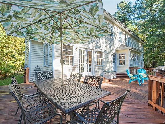 Bring your canoe to this Immaculate 4-bedroom waterfront home on over 6 park-like acres in desirable High Grove Subdivision in Goochland Co. This well-maintained gem boasts a country front porch, well-appointed eat-in kitchen w/ GRANITE countertops, SS appliances, custom tile and lots of pantry space complete with spacious island. Enjoy dining with friends in the formal dining room with gleaming hardwoods. Front living room is also a convenient office with French doors. Relax in front of gas fireplace complete with thermostat/remote control in family room. NEW double doors open onto the freshly stained deck. This home is MOVE-IN READY with NEW Carpet, Fresh PAINT in most rooms, 2015 & 2017 HVAC replacement, NEW dishwasher, REPAVED driveway and beautiful landscaping! Choose front or back staircase to retire upstairs to the vaulted owner's suite. Four bedrooms and HUGE bonus room with closet could easily be used as a fifth bedroom. Award-winning Goochland County schools. Did I mention XFINITY high-speed internet? Please note, sq. footage in tax record is incorrect. Gas fireplace, chimney, flues, swing set convey as/is with no known defects. Please verify all information.