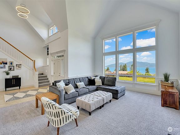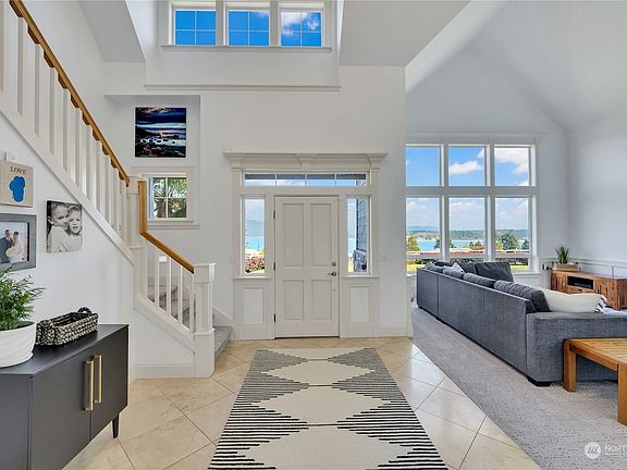 This Cape Cod style home offers views from practically every room of the home! Not too many homes in Anacortes have views like this. As you enter this home you will love the open floor plan of the living, dining rooms and kitchen. There is a 2 sided fireplace that separates the living and dining room. Kitchen has Brazilian cherry cabinets with Kitchen aide stainless steel appliances and a large center island for those perfect gatherings. Upstairs offers 3 bedrooms, huge game room and wet bar. French door leads out of this room to the hot tub on the back deck. Some updates include new interior paint, carpet, built in Kitchen aide refrigerator, light fixtures, blinds, 4 split A/C units, boiler, water heater, etc. The sunsets are gorgeous!