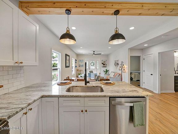 This meticulously beautifully rehabbed 4-bedroom, 2-bath home in the desirable James Davis subdivision combines modern finishes with character, charm and functionality. With thoughtful updates and careful design throughout, this move-in-ready home is perfect for anyone looking for stylish, low-maintenance living. From the moment you arrive, you'll be super impressed by the home's adorable curb appeal, highlighted by fresh landscaping and a large, fully covered front porch—perfect for relaxing outdoors. Inside, the open-concept floor plan on the first floor creates a spacious and inviting atmosphere. The large living room flows seamlessly into the dining area and updated kitchen, which features ample new cabinetry with soft close features, a subway tile backsplash, sleek black and gold highlights, wooden beam, swaggy granite countertop that doubles as a breakfast bar. All kitchen appliances remain, and a stackable washer and dryer, conveniently located on the first floor adds value. The main floor includes two nicely sized bedrooms, and a fashionably done full bathroom with built-in storage. Upstairs, you'll find two additional bedrooms, another full bathroom with built-in shelving, and a versatile bonus room currently used as a second family room, ideal for entertaining, work, or play. Some additional features include newer carpet upstairs, storage area in the stairwell, luxury vinyl plank (LVP) flooring throughout the main level, new light fixtures, ceiling fans, windows, doors, newer roof, a leveled lot, partial privacy fence, gravel driveway, 20x30 garage, concrete steps, sidewalk, and 863 sq ft unfinished fully waterproofed basement perfect for storage or future expansion, and a exceptionally deep one-car garage with automatic opener. Don't miss all the details that make this home so special. Here's your opportunity to own a beautifully updated home in a well-established neighborhood!
