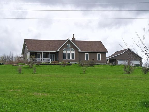 INCREDIBLE open concept 3 bedroom, 2 bath CUSTOM BUILT RANCH ON 12.78 ACRES with vaulted ceilings, floor to ceiling windows, fireplace, and oak hardwood floors SURROUNDED by fruit bearing vineyard and orchard, mature perennial gardens, and a newly constructed (2018) BARN. All nestled on a DEAD END ROAD just minutes from Watertown, Carthage and Fort Drum....this place has it all !!!! Underground utilities , natural woodwork, tray ceiling master suite, Kraftmaid oak cabinets, propane fired or wood boiler (there are both), hardwired generator, ICF poured concrete foundation. The stainless steel appliances and washer and dryer are new and stay with the house. If you're looking for the peace and tranquility of country living within a 15 minute commute, THIS PLACE IS A MUST SEE !!!!