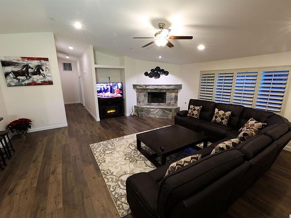 Fully furnished & completely remodeled home with pool & spa.Light & bright with 2 skylights, high ceilings, recessed lighting, Central AC & heating.Laminate & tile flooring throughout the house.