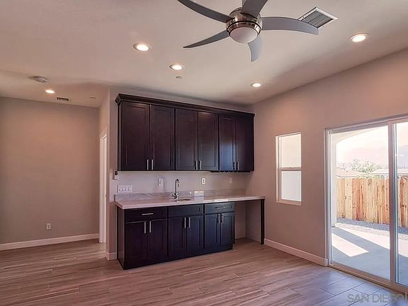 Spacious and versatile, this 6-bed, 4-bath home in Thousand Palms offers modern living with incredible flexibility. Built in 2018, the main home features 4 bedrooms and 2 baths, with high ceilings, sleek tile flooring, and an open floor plan centered around a stylish stone veneer fireplace and entertainer’s bar. The chef’s kitchen boasts stone countertops, custom cabinetry, an eye-catching backsplash, and a large pantry. The private primary suite includes a walk-in closet and spa-like bathroom. Bedrooms are thoughtfully placed for maximum privacy. Attached is a 2-bedroom, 1-bath casita with its own private entrance, full kitchen, and living space—perfect for multi-generational households or generating income as an ADU, short-term rental, or long-term lease. With no HOA, ample parking, and a central location just minutes from Palm Springs, Rancho Mirage, and Palm Desert, this property offers exceptional value and flexibility. Whether you're looking for a private retreat, investment opportunity, or space to bring the whole family together, this home delivers.