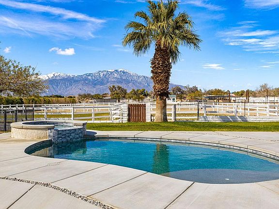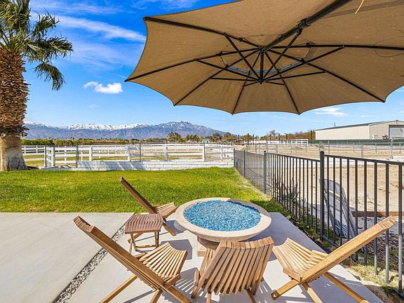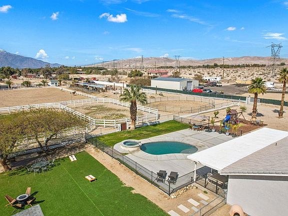 Rare home on 2.8 ACRES off coveted Via Las Palmas, in Thousand Palms. Full remodel JUST completed ! No expense spared: brand new high end chef's kitchen, modern tile floor, contemporary bathrooms. This custom estate has 3 bedrooms, 2 bathrooms, 2 car garage plus RV parking with full hook ups. The grounds are expansive and entertaining with new pebble tech pool and spa and 180 magnificent mountain views. This equisterian property is fully equipped with top notch, new equipment to board and ride horses including multiple stalls, 3 arenas and one larger arena that enables you to ride and train on your property. You would never need to leave! There is plenty of space to build a tennis court or add another guest house! Property is fully fenced and has 2 new electric gates: one for the house and one for the stable so you always have privacy. No HOA. IID is the electric company and offers significant savings compared to others. Thousand Palms is a unincorporated area of Riverside County that allows short term rentals, buyer to do their due diligence. Minutes from Acrisure arena and Palm Desert. Live amongst the riders, the trails, the trainers, million dollar homes yet minutes from the city life. Furniture can be sold outside of escrow.