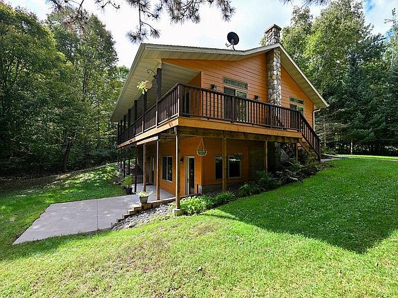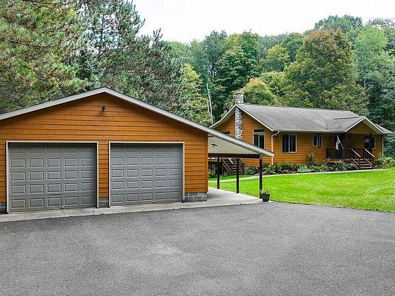 Welcome to your ideal country home on a private lot surrounded by mature woods in a setting you need to see to fully appreciate. This 1 owner, beautifully maintained 3bd/2ba walkout is so well cared for and loved, which will show the moment you pull in the driveway. Initially you will see the detached 2-car partially insulated garage with potential workshop and lean-to and immediately you are drawn to the landscaping and park like setting of the large back yard. Inside features an open concept living room, dining area and spacious kitchen leading to a covered deck, lower level walkout with not only a wood burning stove but in floor hot water heat throughout and a full bath with large jacuzzi tub and shower. There even is a partial kitchen with refrigerator, wet bar area and cabinets creating a perfect option for guests, family or kids. Many recent updates as well! NOTE: Additional parcels available (including additional garage, well, prime hunting land) for a total of 21.78 acres.