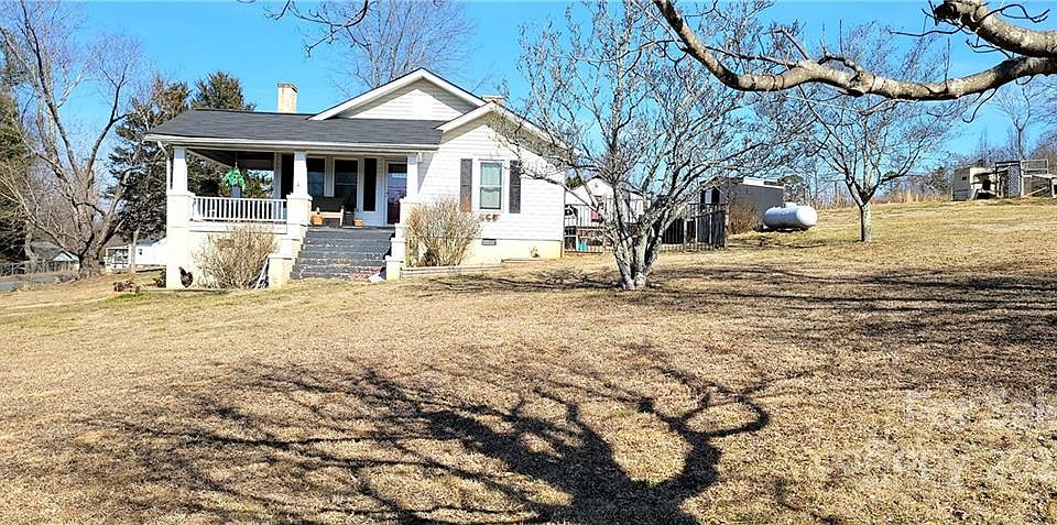 Wake up with the chickens in this spacious 2BR/1BA bungalow, perfect for a mini farm. Situated on a sprawling 2.4 acres with a two-bay detached garage, workshop, chicken coup and outdoor clothes line. Located just minutes to I-40 access between Morganton and Valdese. Large rooms and charming details throughout the home~hardwood floors, decorative brick fireplaces in living and bedroom, interior glass door, beadboard ceilings. The living areas seamlessly flow from the kitchen, dining and living room that leads to the cozy front porch. Lots of floor to ceiling cabinetry and plenty of space in the kitchen with stainless steel appliances. Entry room has built-in bench seats that would make a great office or game room. Laundry room offers plenty of space for clothes racks/storage. Relax by a fire at the outdoor, brick patio. Partial unfinished basement. Updates less than three years old include new roof, windows and hot water heater.
