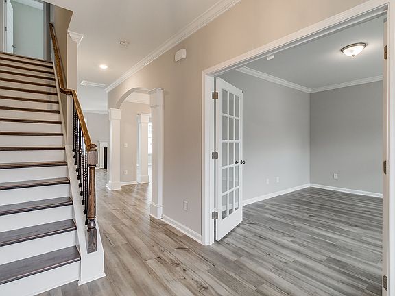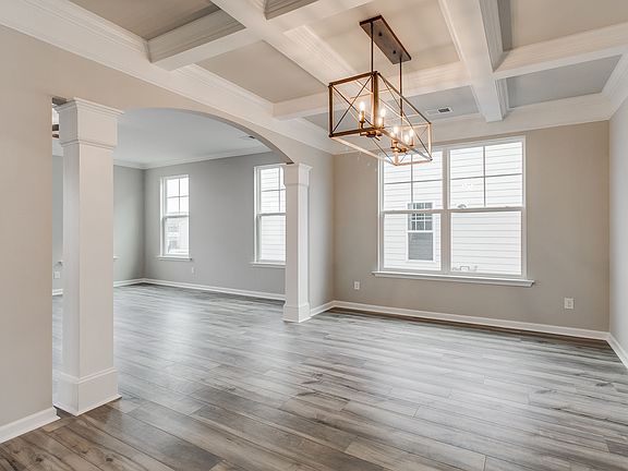 Welcome to the the Roland featuring four bedrooms and 3.5 baths and a large bonus room upstairs. Enter the foyer to be greeted with an office with French doors and a formal dining room with coffered ceiling. The formal dining room is separated by archways and open to the great room that has a gas log fireplace. The gourmet kitchen has a gas cooktop, and double in wall ovens. Upgraded gray cabinets are covered with beautiful quartz counter tops. The kitchen also features a large island wrapped in quartz countertops and eye catching pedants lights over it. Upstairs you will find three secondary bedrooms, a large bonus room with a closet, the laundry room and two full baths. The primary suite is a must see with boxed ceiling. The primary bath has a separate soaking tub and shower and two walk-in closets. The covered rear porch is a great place to enjoy your backyard area. This home includes a fenced in backyard and blinds included!