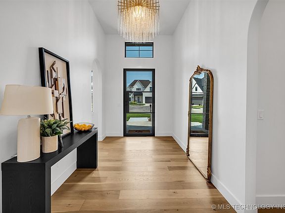 Enjoy a life of luxury in South Tulsa's gated Riverview Park Estates located in Award Winning Jenks Southeast boundaries. This home was custom built and designed and boasts high end lighting, appliances, and materials. This home is one story with four bedrooms with additional game room that could be a 5th bedroom, and 3 and a half bathrooms. Master has large bathroom with heated floors and giant walk-in closet. Upgrades include steel front door and back French doors leading to the covered patio, outdoor fireplace, outdoor firepit, fully turfted backyard. Pool renderings by Alchemy Interiors are available.