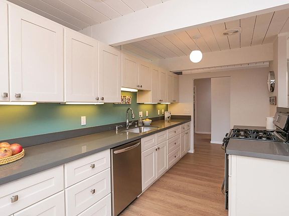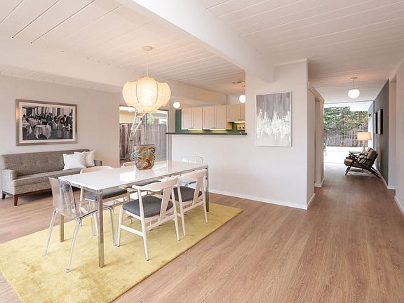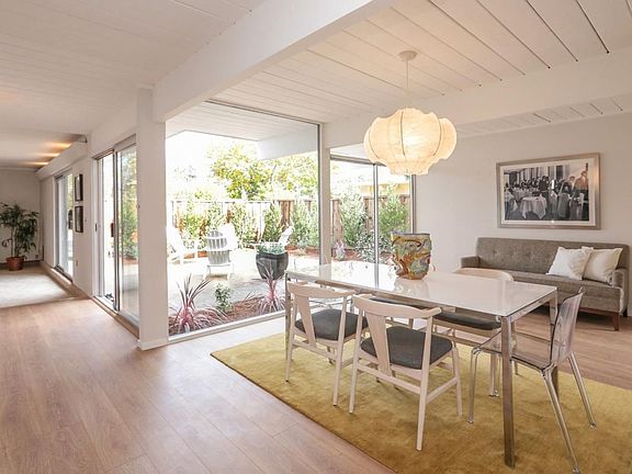 Move right into this stylishly remodeled Eichler with abundant natural light, walls of windows and an open floor plan. This stunning home is ideally located: close to schools, parks and Midtown shops & restaurants. Remodeled kitchen with new cabinets, quartz countertops, under-cabinet lighting, stainless steel appliances including a gas range. Light and bright master suite with floor-to-ceiling windows and a sliding glass door that opens to the backyard; master bath with double sinks, new quartz counter top and tile flooring. Spacious family room that opens to the inviting front courtyard. Additional features include skylights, radiant heated floors, new laminate flooring, new carpet, inside laundry area and fresh paint throughout.