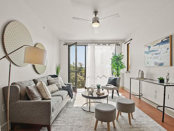 Open floorplanFloor-to-ceiling windowElegant granite countertopsModern kitchenSpectacular city viewsSleek ceiling fan