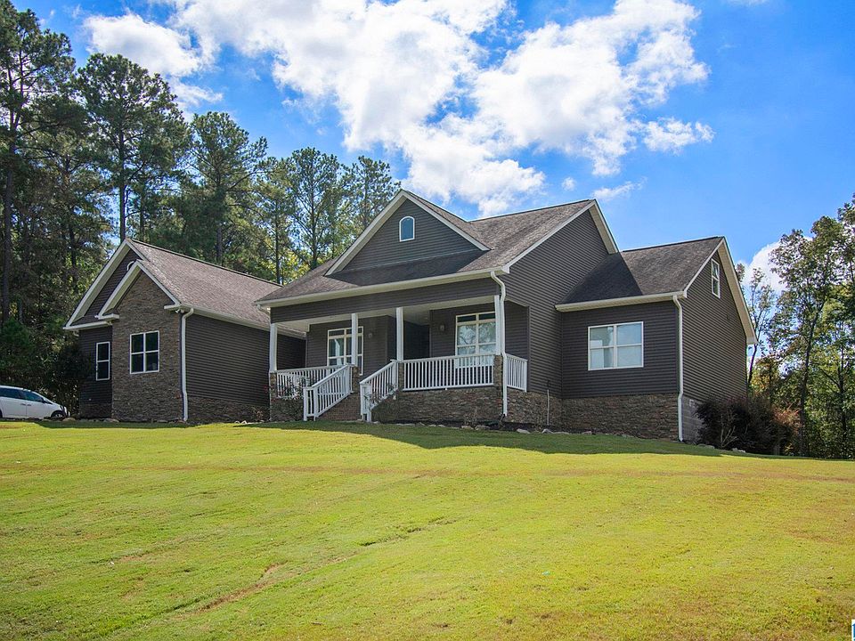 Discover peaceful living on 21.97 acres in the desirable Long Branch community of Calera. This one level home welcomes you with soaring vaulted ceilings and a striking stone fireplace in the living room, plus a formal dining room with hardwoods flowing through the main areas for your family and friends to gather. The kitchen offers granite countertops, tile backsplash, breakfast bar, walk in pantry, and abundant cabinetry. The master suite includes a sitting area, double vanity, separate tub and shower ideal for relaxation. Two additional bedrooms each have private baths, plus an office/study on the main level and an unfinished bonus room upstairs. Enjoy outdoor living on the expansive covered and uncovered deck, with an above ground pool, fire pit area, and carport shed for storage. Nestled on a wooded lot, this property provides privacy and space to relax or entertain- an idea retreat minutes from town. Ariel Photo of property is approximate lines from OnX.