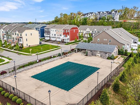 Former Heartland Homes Schubert Model. Level entry into the lower level with hardwood floors, french doors to the den with large windows and next to a full bath. Beautiful white kitchen with oversized island, SS appliances, backsplash and completely open to the dining room and family rooms. Hardwood floors flow throughout the main level and large windows fill the space with natural light. Trex deck off of the family room that overlooks the community pool. Master suite with tray ceiling, walk-in closet and spa-like master bath with soaking tub and glass enclosed tile shower. Two additional bedrooms, full hall bath and a convenient 2nd floor laundry room complete the 2nd floor. Two car garage with a door to the outside. Home has a speaker sound system and custom window treatments. Community center with swimming pool and club house. Minutes to major highways, shopping and schools. North Allegheny School District.