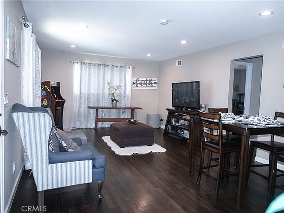This beautiful home on tree-lined street in Riverside, offers four bedrooms with two bathrooms on a large lot. The bright and airy living room welcomes you with spacious layout and two large windows, providing an abundance of natural light. The fourth bedroom, originally a bonus room, has been converted to include a generous closet. The open kitchen is adorned with quartz countertops and elegant white shaker cabinets. The master bedroom features a dual sink vanity, an updated, oversized shower with tile and a bench seat. The exterior boasts newer windows throughout and an oversized patterned driveway. The detached two-car garage is fully drywalled and equipped with an epoxy floor and a roll-up garage door. Near school and FWY.