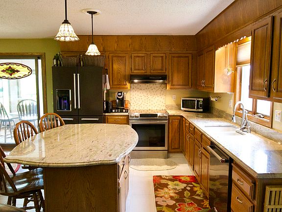 Unique and charming 2 story slab on grade home in north Bismarck with south facing sunroom. Enter the front door onto the amazing Brazilian marble tile flooring. The main floor also features the master bedroom suite with large south facing windows, full bathroom, dual closets and vanity counter station. Continued on the main level is a family room/office that is next to the laundry room & mechanical room with updated water heater & furnace with humidifier and advanced air purifier system. The upper level consists of the updated kitchen with custom Brazilian marble countertops with beveled edges & newer appliances that overlooks the dining area and living room with wood burning fireplace and access to the side deck. The sunroom, family room with additional wood burning fireplace, 2 more bedrooms and full bathroom with marble countertop complete the upper level. The attached 2 stall garage is insulated and sheetrocked with shelving. The backyard has tiered landscaping and views of the State Capital Building. Located in north Bismarck allows easy access to Century Ave and Washington Street.