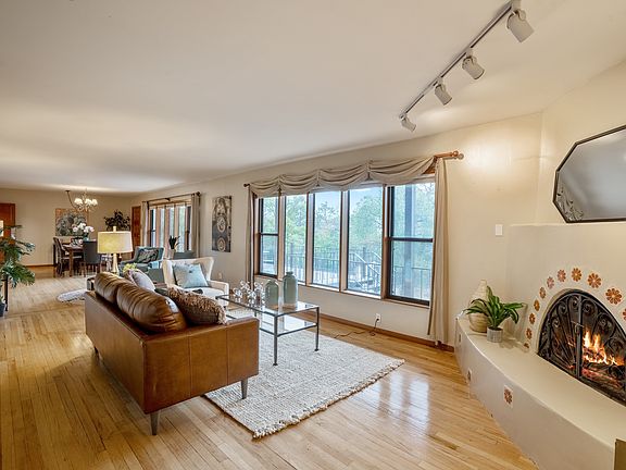 Canyon Lot with Views, 5 Bedrooms, Updated Kitchen & Baths, New Paint and Carpet, Move-In Ready, Landscaping, & More! This beautiful single-family home has been converted from a duplex and offers five bedrooms, plenty of space, and a scenic canyon lot with views! A lush, green grass lawn welcomes you to the property, where a freshly-painted exterior provides great curb appeal. Stepping inside, you’ll immediately notice the peaceful view of the pine trees in the back yard through the large windows in the great room. The great room combines the living spaces from the original duplex and features hardwood floors, a wood-burning kiva fireplace, a separate dining area, and walk-out access to the deck overlooking the back yard and canyon beyond. The updated kitchen features barstool seating, quartz countertops, gas cooking, and a stainless-steel refrigerator. A spacious laundry room rounds out the first floor. A grand staircase with new, plush carpet leads to the two bedroom wings. The west wing is set up as a primary suite, featuring a bedroom with a large walk-in closet, hardwood floors, and great views of the canyon to the north. An updated bathroom features dual vanities and a spacious shower with a glass enclosure. An additional room can be used as a home office, recreation room, or an extra bedroom. The east wing features an updated, full bathroom and three guest bedrooms featuring hardwood flooring. The large yard backs to County land overlooking Pueblo Canyon and is fully fenced. Bonuses include a shed, new hot water heaters, and three designated parking spots. The sellers plan to review offers on Tuesday, August 1, so schedule your showing today!
