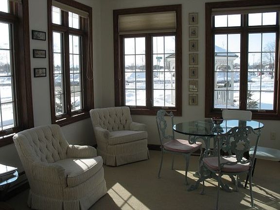 Master suite, dressing/closet area & master bath w/ seperate tub & shower. Living room w/ FP, formal dining room. 9' ceilings. Kitchen/dining area is open concept w/breakfast bar. Dining area opens to a 4-season room. Private patio off 4-season room & gazebo located behind unit (common area). Basement consists of lg. family room w/FP, large BR & full bath.