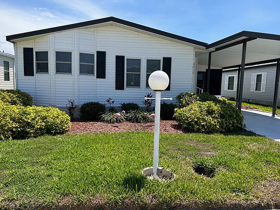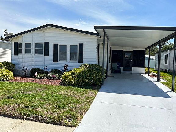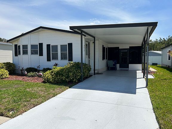 This house is just waiting for you to make it your home. Just bring your furniture and you will be living in one of the finest communities in the area. Our nice sized community of just under 400 homes has two clubhouse and two swimming pools where there is always room for you. Of course we have pool tables , a library, exercise room, jacuzzi, horse shoes, shuffleboard, trips, dinners , dances... We have a full time , manned security gate house which operates 24/7/365. Just a wonderful community in which to live! I know, I have lived here seven years. This house sits on a perfect perimeter lot with a fine six foot white fence on the rear border. Inside you will find a large open floor plan with cathedral ceilings. The dining room boasts a charming built-in china cabinet. The two bedrooms are good size and can support a king size bedroom set. There are also two full bathrooms and lovely lanai with the storage shed access inside the lanai, a very nice feature. The kitchen is brightly lit from the windows that look out over your front yard. The AC is new and there is a water filtration system installed. Don't miss this one! All listing information is deemed reliable but not guaranteed and should be independently verified through personal inspection by appropriate professionals. Integrity Mobile Home Sales cannot guarantee or warrant the accuracy of this information, measurements, or condition of any property. Measurements are approximate. Lot rent subject to change