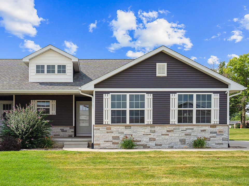 Beautiful end-unit ranch-style 3-bed, 3-bath condo in Marion. The main level features vaulted ceilings, luxury vinyl plank flooring, and an open layout connecting the living area, dining space, and kitchen. Stainless steel appliances, breakfast bar, and tile backsplash complete the kitchen. The master suite includes a generous walk-in closet, private bath and double sink vanity. The finished lower level adds a spacious family room, full bath, and third bedroom, in addition to a large storage area. Attached two-stall garage, covered porch, washer and dryer (main floor), and water softener included. Lawn care and snow removal provided. Small pets allowed with approval. Landlord pays HOA fees (lawn care, snow removal, etc.). Renter pays all utilities. No smoking or vaping. Condo is unfurnished; photos for reference only. Easy access to Highway 13, downtown Marion, parks, Marion YMCA and other fitness centers, and Linn-Mar schools. Lease term: 1 year; shorter terms are negotiable.