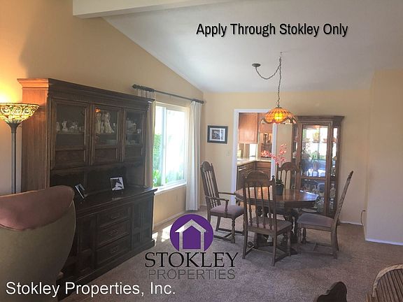 Stokley Properties Presents 3016 Sombrero Circle, San Ramon (Twin Creeks Hills ) OPEN HOUSE 4/9 AT 4:00 PM. - This is a beautiful 4 bedroom 2 bath single story home with a great floor plan. The kitchen was recently remodeled with Granite counter tops, 6 burner gas cook top and wall ovens. You enter into a spacious living room / dining room space that leads back to the remodeled kitchen and family room with a gas burning fireplace and wet bar. The master bedroom suite is situated separately from the rest of the bedrooms with it's own separate patio. The other 3 bedrooms are at the back of the house. The rear patio and fenced yard are beautifully maintained and a fantastic space to relax or entertain family and friends. Located in the highly desired neighborhood of Twin Creeks Hills. There is a community pool, tennis and basketball courts for your enjoyment. SHOWINGS BY APPOINTMENT ONLY - OPEN HOUSE FRIDAY 4/9 AT 4:00 PM. AVAILABLE MAY 1ST FOR MOVE IN. THIS HOME DOES NOT COME FURNISHED. PLEASE DO NOT DISTURB CURRENT OCCUPANTS. * Minimum one year lease at $3995.00 per month and $4200.00 security deposit * This property will consider pets with breed restrictions, pet screening and an additional deposit * No smoking * Owner requires renter's insurance for the duration of the tenancy Lease must start within 2 weeks of approval Full security deposit due within 24 hours of approval Full month's rent due at lease signing (2nd month is prorated if lease begins after the 1st) Jill Goolsby Cal DRE# 01849474 Property Manager Stokley Properties, Inc. (RLNE6548786)