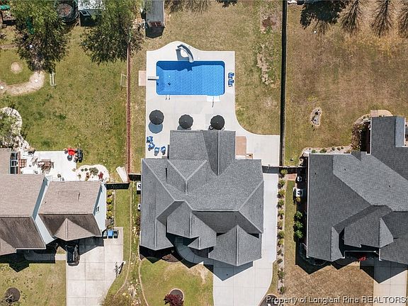 Welcome to your GORGEOUS two story Brick home. This home boasts 5 bedrooms, 4 full Baths and a HUGE Bonus room. At just under 3200 square ft, you will not lack space. First floor has all Hardwood floors. Owner Suite on 1st floor w/ sitting area, dual vanity, jetted tub and walk in shower. Formal dining w/ coffered ceilings. Gourmet kitchen w/ granite countertops, double oven and lrg pantry. Open concept home has a giant living room, separate den w/ two fireplaces and a 1st floor guest suite w/ its own bathroom. First floor laundry. Upstairs are 3 more large bedrooms, a bonus room and walk in attic for storage. Out back is a beautiful screened in patio overlooking your backyard oasis. With an in ground pool, large yard, new privacy fence and shed for storage. Tons of room for entertaining. Entire interior of home repainted. New Vapor Barrier. Newer HVAC. Offering $6500 for closing costs/carpet or buy down rate with acceptable offer. Located near great schools and close to Ft Bragg!