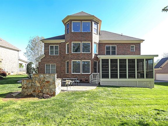 Nestled in Matthews, NC's Brookhaven subdivision, this home offers luxury and convenience. Set on nearly half an acre with a flat, wooded backyard, it features a main-level guest bedroom and meticulous updates like a 2022 roof replacement, all updated HVACs, all new carpet, and fresh paint throughout. The layout boasts an open concept with vaulted ceilings, a remodeled kitchen, and an oversized sunroom with Ezee Breeze Windows. Step outside to a serene oasis with a built-in grill and firepit. The second floor offers a luxurious primary suite, with a remodeled spa bathroom, a soaker tub and a walk-in shower. The third floor has a bonus and theater room. 3-car garage, residents can enjoy Brookhaven's amenities and easy access to I-485. Schedule a showing today! Home is 5 bedrooms, 5 1/2 baths 5115 sq. ft.