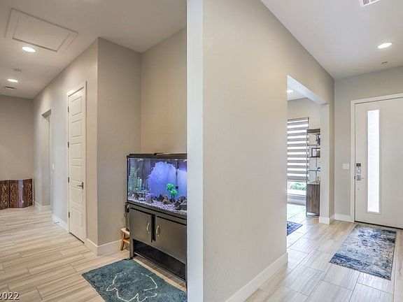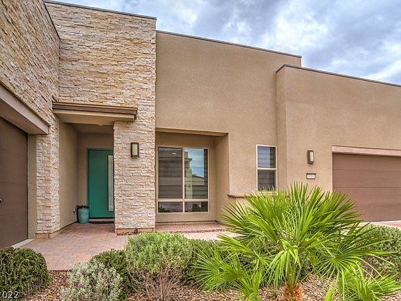 Incredible opportunity in sought-after Escala at Inspirada. This modern masterpiece sits on a corner lot in one of the few gated neighborhoods inside the Inspirada masterplan. At nearly three thousand square feet, this single story beauty features soaring ceilings, stone pattern tile throughout the living area, and a dream kitchen with professional appliances, including a 6 burner cooktop plus griddle. Pocket sliders lead you out to the professionally landscaped rear yard, which is perfect for entertaining. It comes complete with built in fire-pit, tranquil fountain, raised planters, and synthetic grass. Primary retreat is separate from two other bedrooms and den and features two enormous walk in closets. The spa-like primary bath has an oversized soaking tub, glass shower with dual shower heads, and separate vanities with pendant lighting. Custom window treatments, high performance ceiling fans, and a whole house water filtration system round out this dream property. Welcome home!