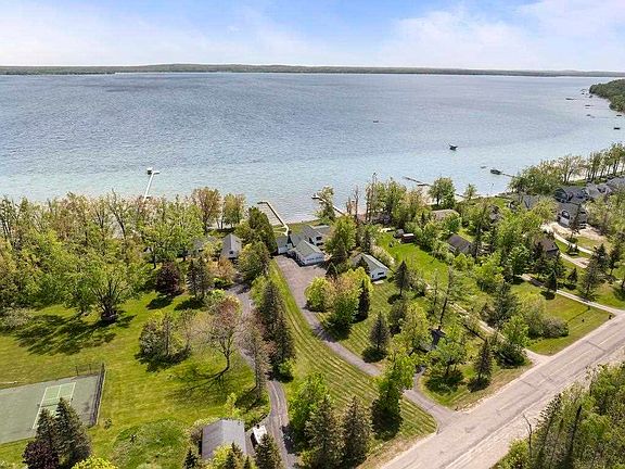 Welcome to a truly special generational home on the shores of beautiful Burt Lake, where 118 feet of sandy frontage and endless water views set the stage for unforgettable family memories. With its inviting charm, character, and cozy ambiance, this well-maintained 4-bedroom, 3.5-bath home is thoughtfully designed for comfort, flexibility, and year-round enjoyment. Burt Lake is one of Northern Michigan’s crown jewels—an all-sportsman’s lake renowned for its crystal-clear water, excellent fishing, and ideal conditions for boating, water skiing, tubing, and kayaking. With direct access to the famed Inland Waterway, the adventure continues far beyond the dock. Thoughtfully executed floor plan includes main level living, a private guest suite, and an exceptional floor plan that works beautifully for multiple generations or large family needs. Nearly every room captures a view of the lake. Multiple enclosed sun porches and spacious decks provide year-round spaces to gather, relax, and enjoy the setting in every season. Beyond the main house, a detached 1,000 sq ft studio/flex building with a full bath and living area offers a versatile bonus space—perfect for guests, creative pursuits, or a quiet retreat. An additional detached garage/storage building ensures there's room for all your lake gear and seasonal essentials. A private dock with electricity extends your living space right onto the water, making it easy to jump into boating season. Full of character, charm and cozy corners - This is more than just a lake house—it’s a place where generations come together, where summers are filled with laughter, and where the magic of Burt Lake becomes a cherished part of your family story.