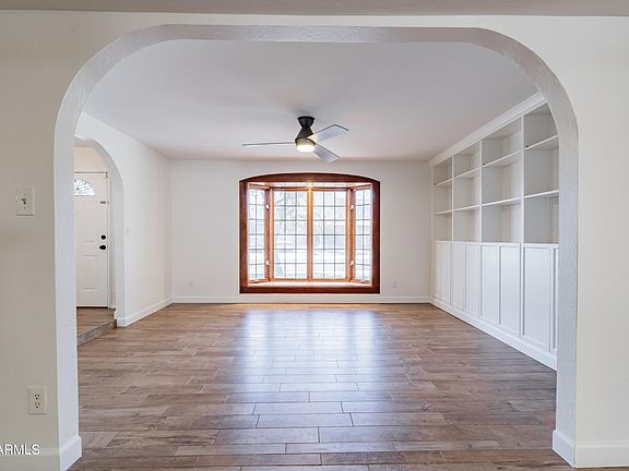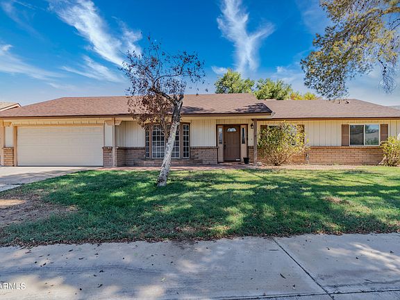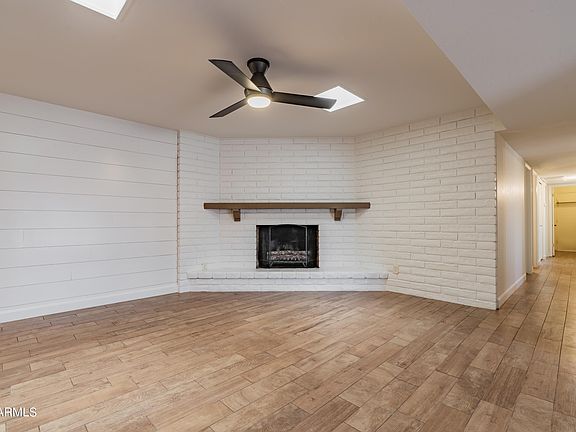 Awesome location! Don't miss this rare opportunity to own a home in this established neighborhood! The large,single-story home features an open floor plan & an oversized lot w/ mature fruit trees & grass! There are 4 bedrooms & 2 bathrooms, but also a bonus 10x9 room that can easily be a 5TH BEDROOM! Beautiful wood-look tile runs throughout (except secondary bedrooms). Freshly painted inside! All new light fixtures! Washer, dryer, & refrigerator included! A gorgeous brick fireplace, exposed brick wall, garage cabinets, workshop, built-in living room library, skylights, sunken fire pit hangout, & built-in BBQ are just some of the unique features of this home! And NO HOA! Walking distance to everything you need including schools, food, shopping,& the new Phoenix Metro extension! A must see!