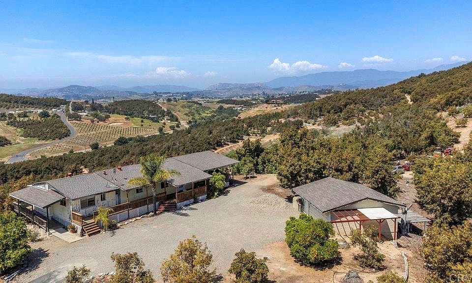 Welcome to Ridge Creek, a gated community with no HOA! This 8.68 acre parcel has a 2 bed + office / 2 bath mobile home with panoramic views of Palomar Mtn and is surrounded by approximately 1,000 beautiful Hass avocado trees! About 800 of the trees are avocados that are less than 5 years old. There's also an assortment of other trees on the property including 4 cumquat, 1 satsuma mandarin, 1 tangelo and 1 Valencia orange. The property is fully fenced and gated and features a detached 2-car garage, chicken coop and 2" water meter. The views from this property are truly breathtaking. This property would also be ideal for someone looking to build a custom home - live in the mobile home while you construct your dream home! This community is located in west Valley Center, just minutes from the 15 providing easy access to the rest of San Diego County as well as Riverside County. **Due to the age of the mobile home (approx 1970) only cash offers will be entertained**
