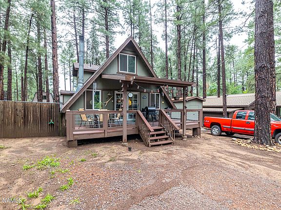 Looking for that Mountain Getaway? Come and enjoy the 4 Season in the Pines. This A-Frame Cabin is nestled in the tall Ponderosa Pines. Cozy 3 bedroom 2 bath cabin. Wood laminate flooring, pellets stove and composite deck.