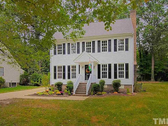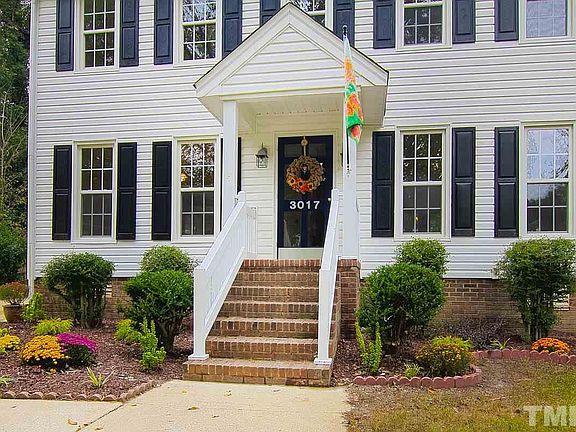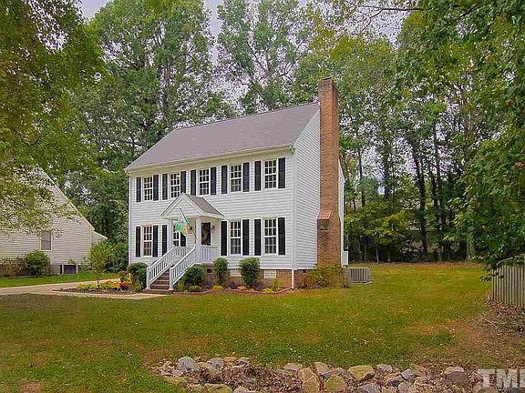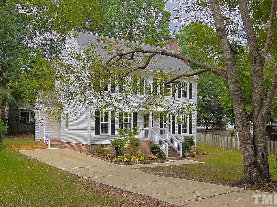 Move-in ready home in N. Raleigh's sought after Durant Trails Subdivision. Interior completely remodeled- open kitchen features white cabinetry, kitchen island, granite & new SS appliances! gleaming hardwoods thru entire 1st floor, brick masonry fireplace in family room w/ french doors leading to deck. Gorgeous master suite w/dual walk-in closets and new master bath with double sink vanity & tiled shower. All new hardware & fixtures throughout, ceiling fans, smooth ceilings, new carpet, freshly painted!