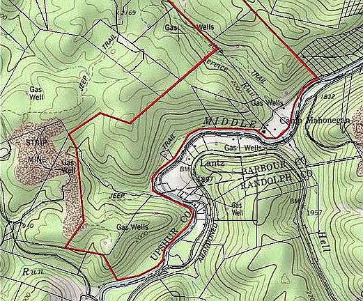 Camp Mahonegon Scout Reservation...412 acres +/-...Google Earth coordinates LAT 38.951480 (N) LON -80.075505 (W)...Upshur & Barbour counties...20 minutes west of Elkins, WV...recently timbered to 14" DBH (diameter breast height)...2 miles of river frontage on the Middle Fork River...Stocked with trout February through May)...16 structures ranging from mess hall with full commercial kitchen, cabins, bath house, trading post, outdoor camping structures...Public water, 3 underground wells, electric, natural gas, internet, cell service, large pond, nice stream....Main campus consists of 17 acres and all the out buildings....the balance is all timber land.