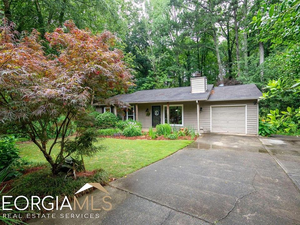 This charming 3 bedroom, 2 full bath ranch home features NEW vinyl windows and a NEW HVAC system. The family room has a large stone front fireplace with gas logs that is open to the eat-in area off the kitchen. The kitchen boasts ample counter space, a pantry and a center island. Just off the kitchen is the large, recently renovated laundry room with LVP flooring. Down the hall are two roomy secondary bedrooms that share a full bath with a new marble topped vanity and new tile installed in the tub/shower area. The primary bedroom has its own full ensuite bath with tile floors and tub surround. The owner has lovingly and meticulously landscaped the front and back yards to create a welcoming retreat. Exit the NEW french doors off the kitchen to enjoy the large back deck looking out to the private backyard that serves as the perfect place for entertaining family & friends. This neighborhood is in the heart of Kennesaw, just minutes away from Swift-Cantrell Park, Kennesaw Mountain Battlefield Park, Kennesaw State University and tons of shopping and dining.