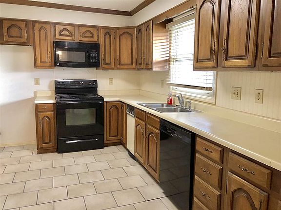 - KITCHEN DESC: Eat In Kitchen, Crown Mold, Tile, Window Cov, Chair Rail
