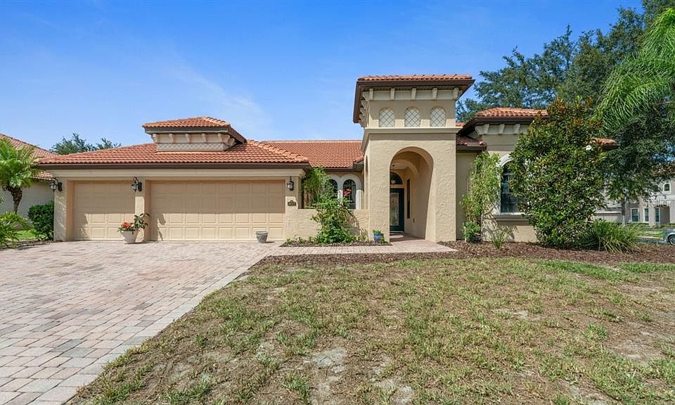 " Welcome to your Beautiful Mediterranean Castle!! Stunning 4 bedroom, 3 bathroom and 3 car-garage Mediterranean style home complete with a soothing front courtyard and Mediterranean Barrel style clay roof located in highly sought after Wekiva Springs Estates! Within a short bike ride from Wekiva Springs State Park! This beautiful one story home is nestled on 11,081 Sqft. corner lot with majestic oak trees. This home features 12 foot ceilings, large open spaces with plenty of natural light flowing through all the rooms, large master bedroom with his- and-hers walk-in closets, a formal dining room a cozy home office, a spacious open island kitchen with stainless steel appliances, granite countertops , 42 inch upper cabinets and a delightful breakfast nook with a huge bay window, three panel 8 foot sliding glass doors in family room that open wide into the wall out onto the large screened-in trussed roof lanai that includes a large 6 person hot tub,PVC fencing for extra privacy, an oversized laundry room with a granite countertop and a laundry tub. Some improvements include: HVAC (2021) with Air Knight Air Purification System able to kill COVID (confirmed by the CDC), increased ductwork size to the back of the house for better cooling capacity, brand new tile and carpeting. A must see! School bus stop right at entrance gate. " Pleas click on Virtual tour to see a walkthrough video of the house.