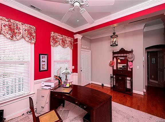 This charming 2 bed 2 bath home will steal your heart! Rocking chair front porch overlooks the beautiful landscaping and mature flower beds and greenery. Follow a stone path in the back of the home to your own secret garden under a stunning pergola. Gorgeous hardwoods in the foyer, kitchen, great room, and hallways. Lovely Office with dentil and picture molding. The arch entry ways and built in's are only some of the special features this home boasts. Master Suite with garden tub, separate shower and generous size master closet. Whether entertaining in the living room while preparing a meal in your open kitchen with island, or serving a dinner in the formal dining area this home will make any occasion feel welcoming and cozy. Close to shopping, restaurants and I-485.