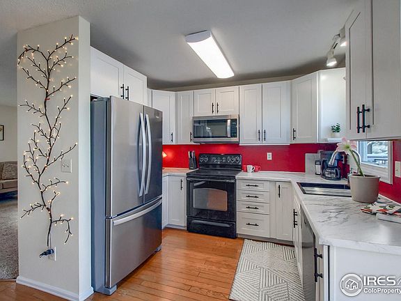 South facing, 3 bedroom home with beautiful VIEWS located in SW Loveland! This home features a large living room, AC, kitchen, recently remodeled with new cabinets, sink and newer appliances. Main level balcony access for easy entertaining on the massive deck! Primary bedroom has sliding doors to allow you to walk out and enjoy your location. Bathroom & guest room located on the main level. Second guest room & 3/4 bath located on the lower level. Large family room with beautiful brick and gas fireplace insert. Epoxy floors in basement. Picturesque backyard, walkout basement, your own deck/boardwalk to watch and enjoy the wildlife! Showing start 1/20/2023 -