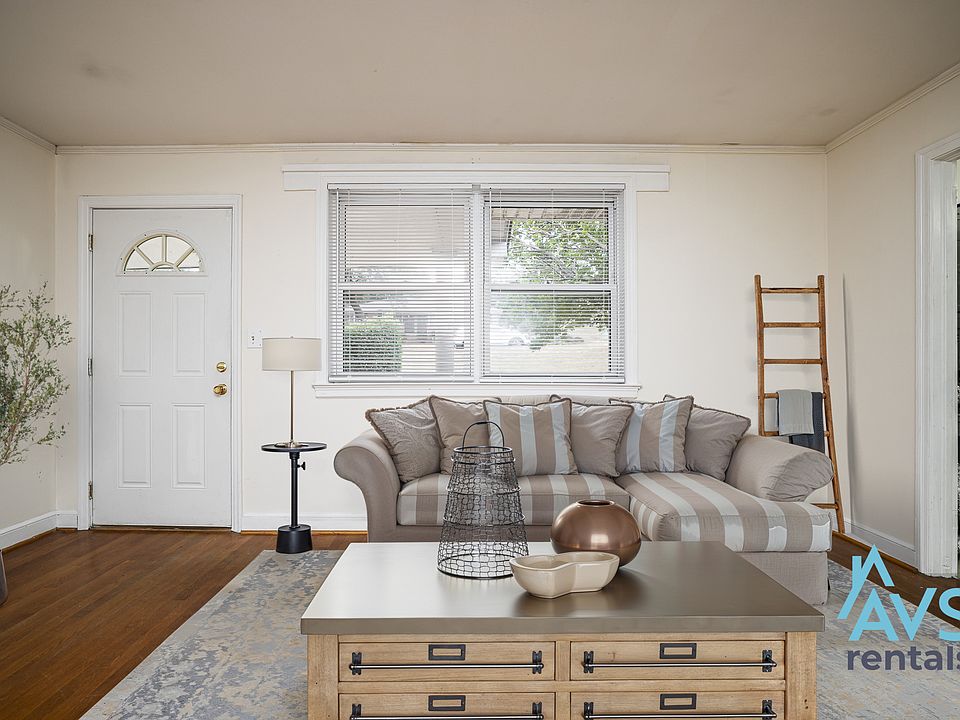 Welcome to 3017 Longleaf Road located in the highly desired Melrose Heights Neighborhood! Covered front porch. Living room with hardwood floors. Spacious eat in kitchen features a fridge, stove, dishwasher, and stackable washer/dryer. Two roomy bedrooms with ample closet space and overhead ceiling fans. Hall bathroom has built in storage and a tub/shower combo. Central HVAC. Off street parking with driveway and parking area. Detached garage for additional storage. Situated on a spacious lot with plenty of yard area. Water, sewer and lawn care are provided for an additional flat $50 a month fee. Small pet negotiable, subject to Owner's approval and fees. No interior smoking. Available Now!