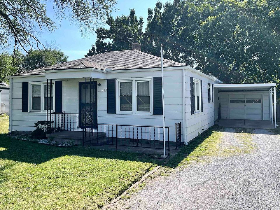 This North Wichita home has so much to offer! Three bedrooms, two different living spaces and a *huge* fenced backyard. The kitchen has loads of storage, a large island with bar seating and is completely open to the back living room. Hardwood flooring in the front living room and 2 front bedrooms. The rear family room has a brick fireplace (with gas log insert) flanked by built-in shelving. The 3rd bedroom is at the back of the home and is the largest… Plus two closets! Plenty of outdoor space out back with a large partially covered patio and almost half an acre of beautiful nature with lots of mature trees. It keeps going and going. So many options with this outdoor space! Plenty of room for your vehicles with a long driveway, RV parking space, carport and a detached garage. There’s also a storage shed attached to the rear of the garage. Newer roof, HVAC system and the original windows have been replaced. This is a great residential location with fantastic shopping, dining, parks and easy highway access nearby.