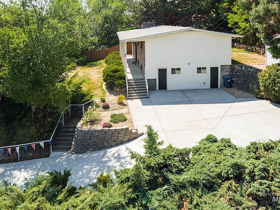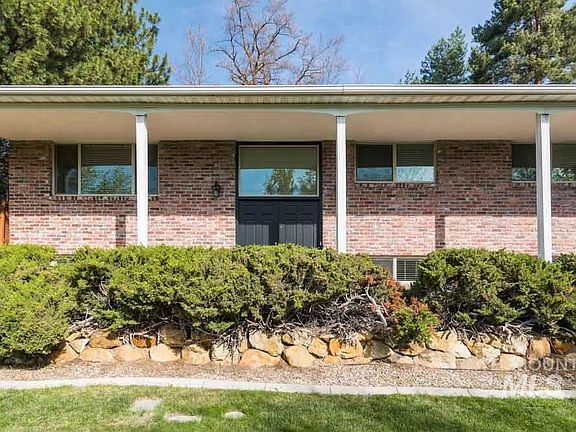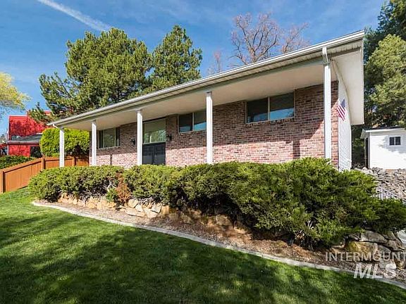 Huge Price improvement and a New Concrete Driveway and parking for 3+cars! A MUST SEE! Coveted North Boise Highlands home that is completely remodeled & move-in ready! Grand brick front 2 story treelined house with white pillars, great view of the Simplot Hill Flag from the front porch. Trail out your backyard to enjoy! Skiing, hiking, mountain biking in minutes. Everything the Idaho lifestyle has to offer. Nice private backyard with shed. Upgrades throughout include: modern new kitchen with custom white cabinets, lighting, granite, LG stainless steel appliances, backsplash, handles, single basin sink, faucets, new bathrooms fixtures, interior paint, LVP flooring and carpet. The bonus room & 5th bed could easily be converted back into a 2 car garage.