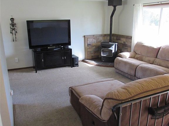 Adorable Valley home with great curb appeal! Meticulously maintained with modern updates! Bright & inviting main floor offers two bedrooms, full bath & cozy pellet stove with remodeled brick and tile setting. Fresh drywall & paint in basement family room, with tons of storage Completely remolded basement bathroom with walk in shower and high-end limestone! Large deck overlooking huge fenced back yard & 2 storage sheds! Yard has sprinklers & drip system. 2-car garage with additional parking on side of home!