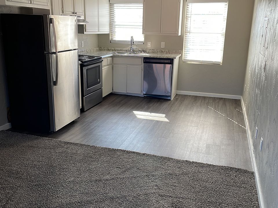 Large top floor one bedroom located just minutes from the Paseo District. Kitchen and living room is an open floor plan with carpet and laminate flooring. Fresh paint a year ago, tub refinished a year ago. The bedroom has large closet and a sitting nook. Enjoy updated finishes in this well maintained 1949 building. Quiet building, only 14 units in the complex, a courtyard offers outdoor space for your enjoyment. The living room, dining room and kitchen are an open floorplan with the 1 bedroom on the East side of the apartment. Range, refrigerator, water, trash and sewage included in rent. One off street parking spot per apartment. Coin operated laundry on premises. Carport parking available for $35 per month. Owner pays water, trash and sewage. Tenant pays for their utilities - electric and internet.
