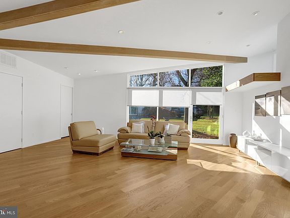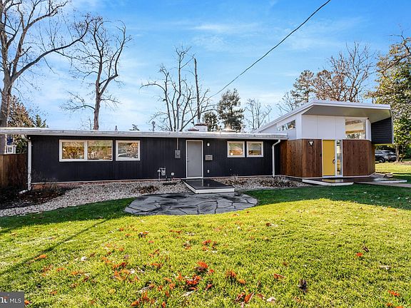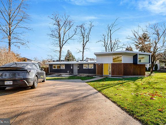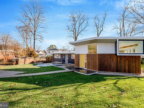 Welcome to 3017 Pine Spring Road, a stunning renovation and expansion by Michael Cook of Cook Architecture, located in the sought-after mid-century modern community of Pine Spring in Falls Church. Sited on a quiet cul-de-sac on a private 0.27-acre lot, this exceptional home blends iconic mid-century design with modern luxury and thoughtful upgrades throughout. Including new roof and new stove new dishwasher new washer and dryer The residence offers 4 bedrooms, 2.5 bathrooms, and 2,215 square feet of living space, combining the original footprint with a dramatic butterfly-roof addition. The soaring living room and private primary suite cantilever 3.5 feet off the foundation, creating a striking architectural statement while enhancing light and space. Completely updated, the home features new plumbing, electrical, insulation, roofing, and low-E insulated double-paned windows, along with two-zone HVAC, new furnaces, and high-efficiency water heaters. White oak floors, sealed with a low-VOC matte finish, run throughout the home. Recessed lighting and adjustable art lighting have been installed to highlight both the architecture and artwork. The heart of the home is the open kitchen, dining, and living area. The kitchen features a large island with quartz countertops, a new stove, and a new Bosch dishwasher, and opens seamlessly to the dining area with a gas fireplace, skylights, and a wall of glass overlooking the backyard stone patio. The living room addition showcases exposed structural beams clad in ash, expansive glass walls, and ample wall space for art, along with a newly added powder room. The primary suite is a private retreat, featuring a full wall of custom ash closets with walnut shelving and thoughtfully placed windows for maximum privacy. The spa-like primary bath includes a deep soaking tub, glass-enclosed shower, and double vanity. Three additional bedrooms offer generous storage and share a beautifully renovated full bath. All bathrooms are finished with white Italian wall tile and modernist gray porcelain flooring. Additional upgrades include custom built-ins and doors in all closets, refinished hardwood floors, custom blinds (including motorized units in the living room), a Nest thermostat, and a fully fenced yard. Outdoor living spaces include stone patios in the front and back yards, decks with separate owner and guest entrances, and a large painted storage shed. The exterior combines restored original wood siding with cement board siding and cedar cut to match the original dimensions. Ideally located just off Route 50, the home is close to Metro stations, the Mosaic District, and all that Falls Church has to offer—providing both convenience and tranquility in a truly architectural setting