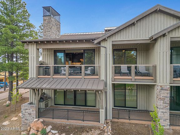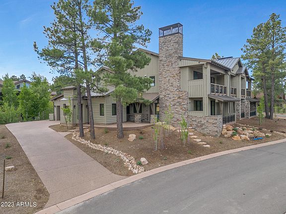 This upper-level condo features stunning views of the San Francisco Peaks. This gorgeously designed home is being sold turnkey and sits at a little over 2,000sqft including 3 en-suite bedrooms, and is the perfect mountain get-away. As you enter the living room you are greeted by center sliding doors leading to the back deck, a floor to ceiling stone fireplace lined with custom floating shelves. The kitchen is perfect for entertaining, and includes an expansive island with additional bar seating, built-in microwave, 6 burner range and an additional beverage center with wine cooler. The primary bedroom has its own private exit to the back deck and bath that includes a soaker tub, separate shower, dual vanities and a walk-in closet.