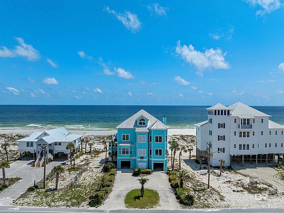 Welcome to your dream home on West Beach! This stunning property boasts 100 feet of gulf frontage and breathtaking views of the Gulf of Mexico and Little Lagoon. Featuring seven spacious bedrooms and seven and a half baths, this home offers an open floor plan with expansive windows, flooding the kitchen, dining, and living areas with natural light.The gourmet kitchen features top-of-the-line stainless steel appliances, double ovens, an icemaker, a kitchen island with a prep sink, two dishwashers, and a two-drawer cooler. Perfect for entertaining, the living area features a wet bar, wine cooler, and mini refrigerator. Every floor includes a convenient kitchenette, and each bedroom offers serene views, ensuring comfort and tranquility throughout the home.For added convenience, the home includes an elevator. Experience the best of Gulf Shores living in this exceptional gulf-front home. This is a must-see! Location is perfect. Rental Machine. Buyer to verify all information during due diligence.
