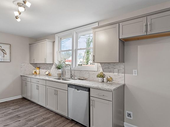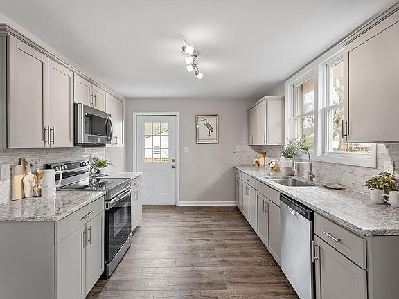 Beautiful renovated brick ranch with a fenced in backyard and a large garage/workshop in downtown Wendell! Updated kitchen with new custom shaker cabinets, granite counter tops, tile back splash and stainless steel appliances. Kitchen has an open concept with the family room great for entertaining! Bathrooms with new custom vanities, tile floors and quartz tops. New engineered wood floors throughout the main area of the house and new carpet in bedrooms. Freshly painted inside and out.