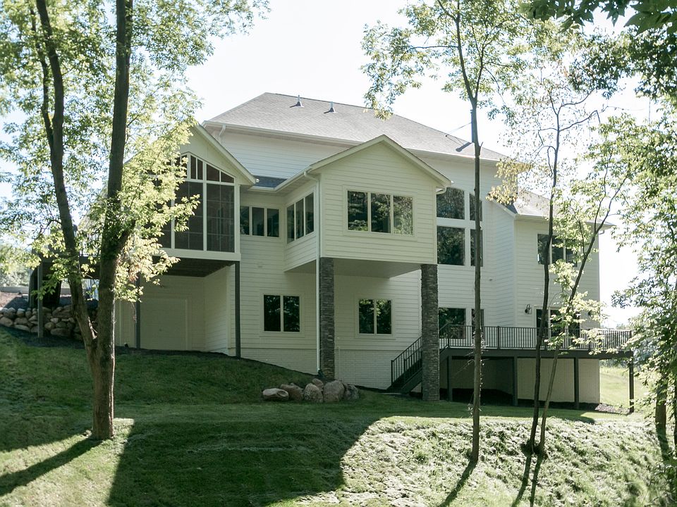 STRIKING CONTEMPORARY DESIGN utilizing modern and natural elements. Superior craftsmanship by Klosterman Construction with hand-crafted woodwork and custom metalwork and tiling. Expansive floor to ceiling windows provide natural light & views of the private wooded acreage. Wonderful entertaining home with dramatic great room, dazzling kitchen with quartz counters, spiraled pendant lights, stainless appliances, wood cabinetry and large walk-in pantry and show-stopping lower level bar and wine cellar.